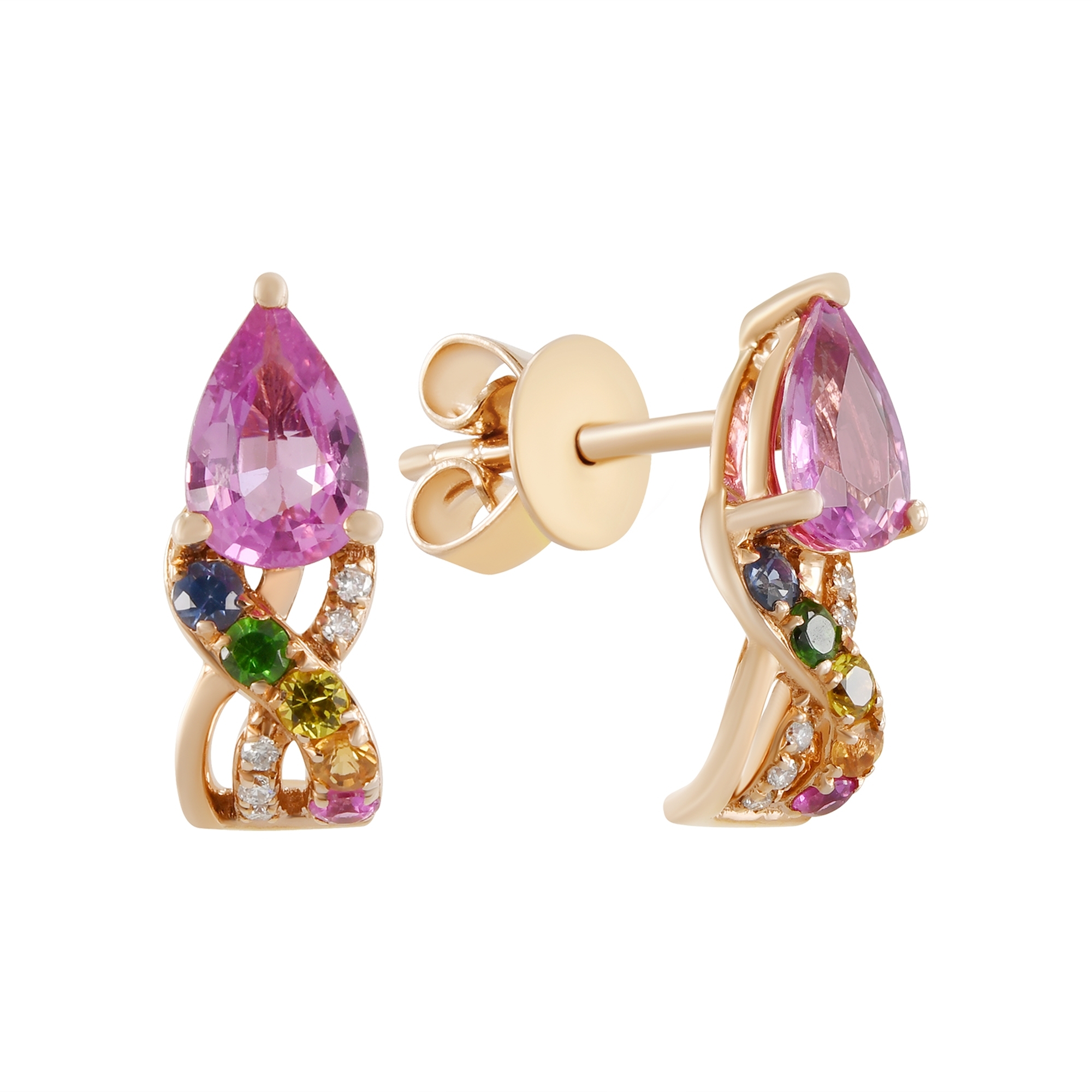 KALEIDOSCOPE - Fai Po 14K Rose Gold Multicolor Sapphire with White Diamond Earrings, 1.215 TCW