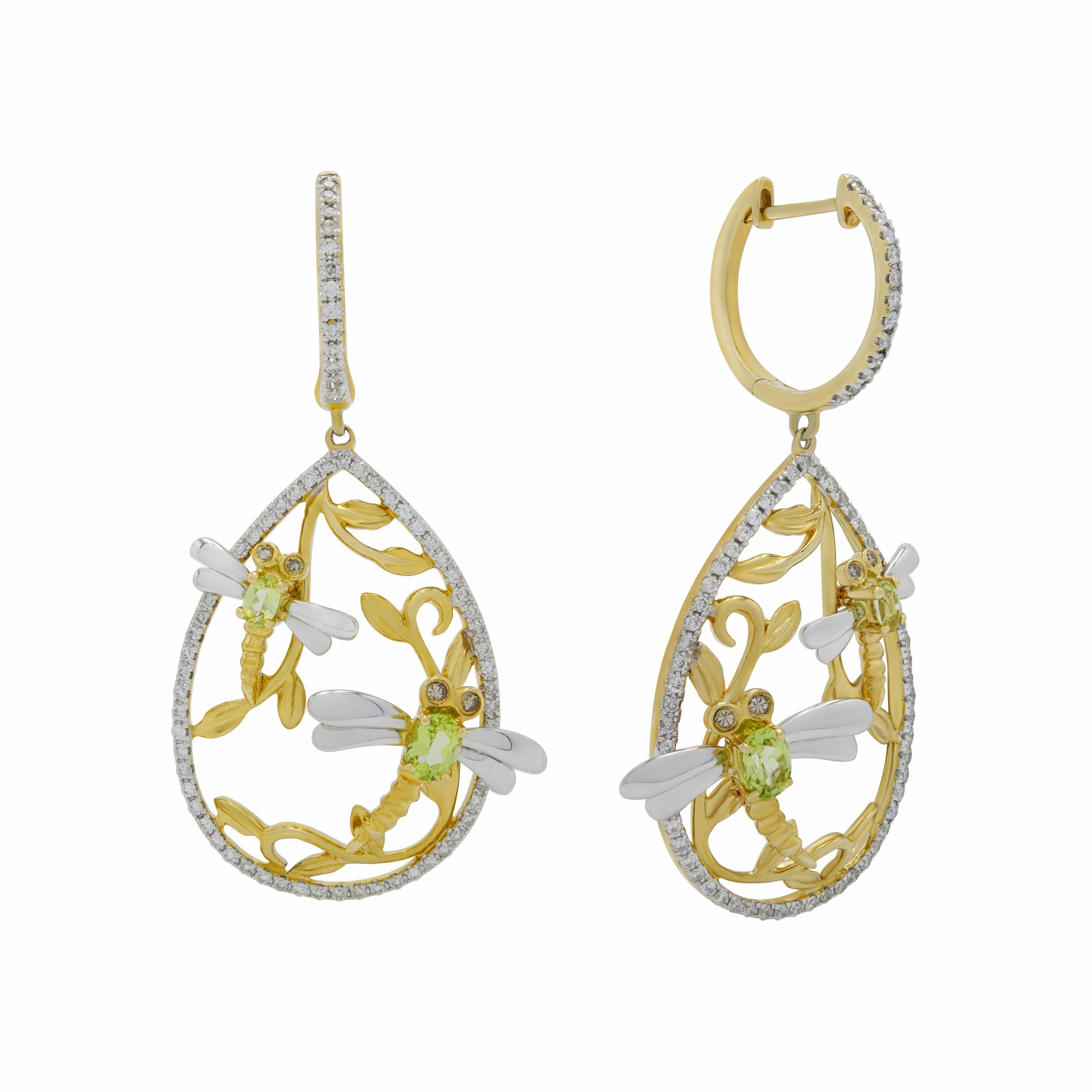 LIFE - Fai Po 14K Yellow Gold and 14K White Gold Peridot and Chocolate Diamond with White Diamond Earrings, 1.105 TCW