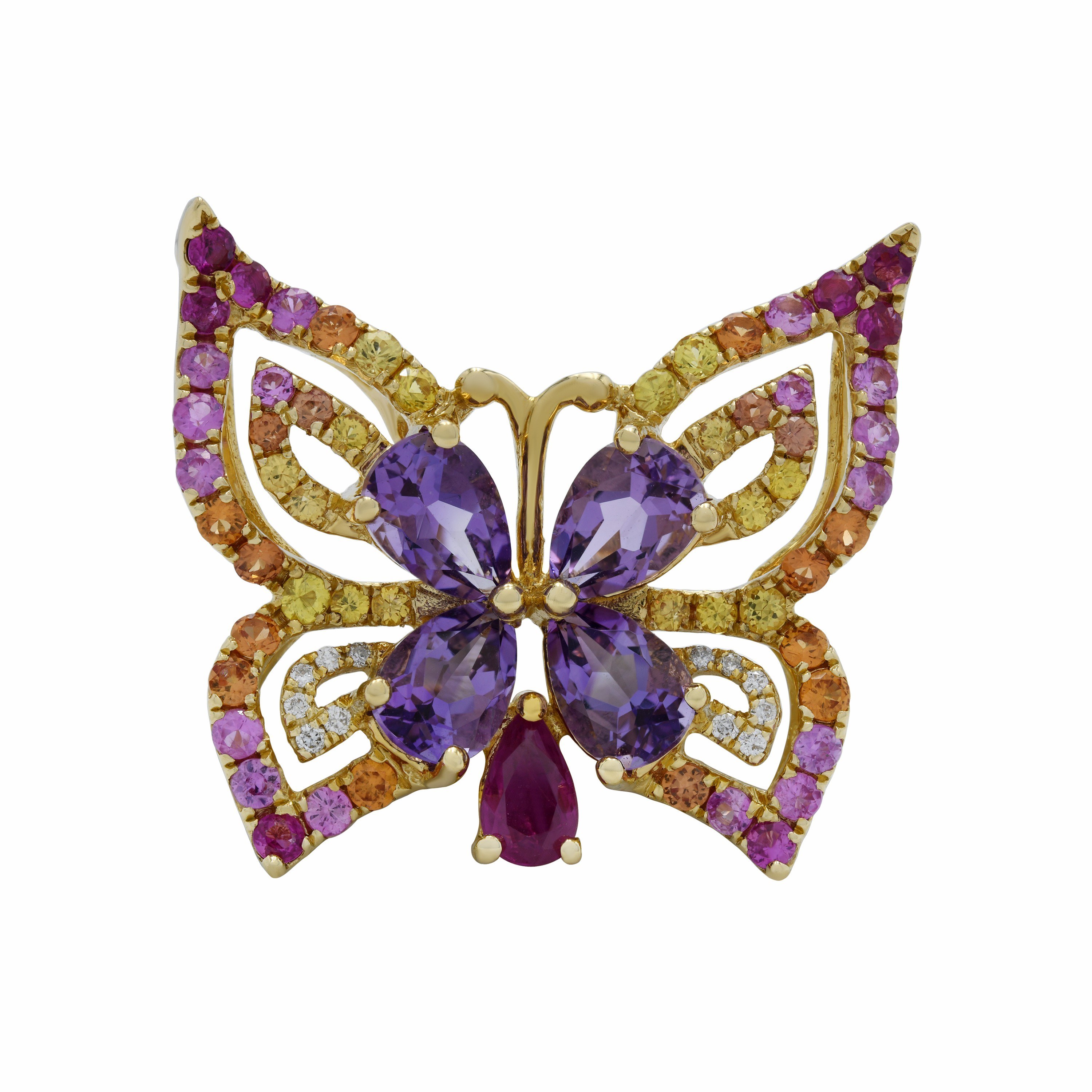 LIFE - Fai Po 14K Yellow Gold Pink Amethyst, Ruby and Multicolor Sapphire with White Diamond Pendant, 2.875 TCW