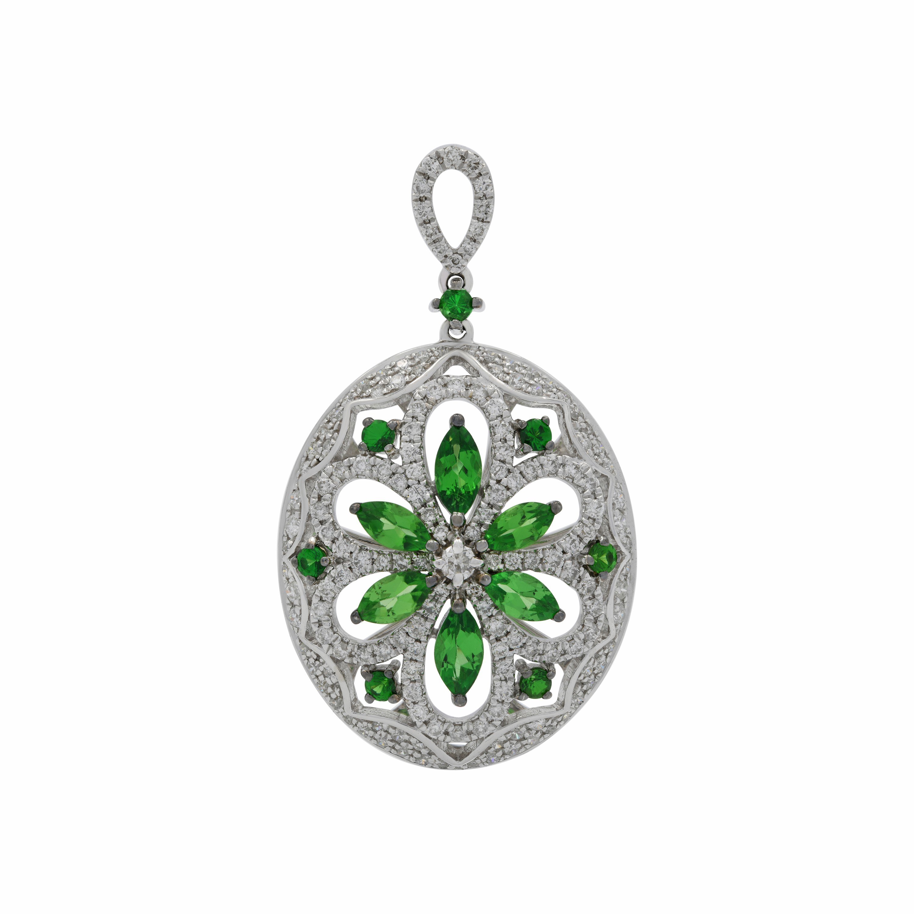 MEADOW - Fai Po 14K White Gold Tsavorite with White Diamond Pendant, 1.551 TCW