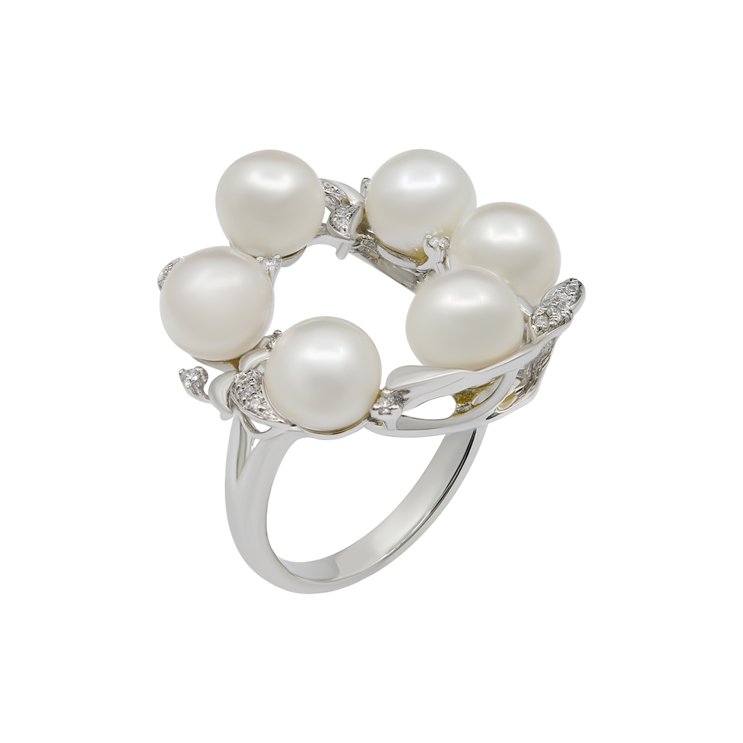 PERLA - Fai Po 14K White Gold White Fresh Water Pearl with White Diamond Ring, 11.054 TCW