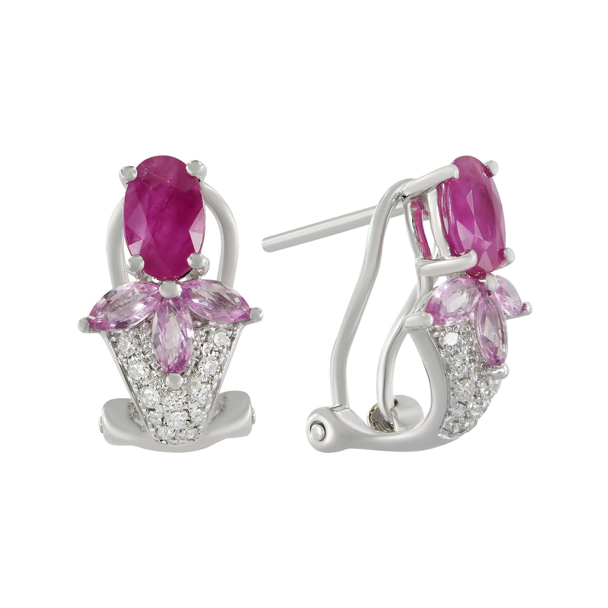 RUBI - Fai Po 14K White Gold Ruby and Pink Sapphire with White Diamond Earrings, 1.69 TCW