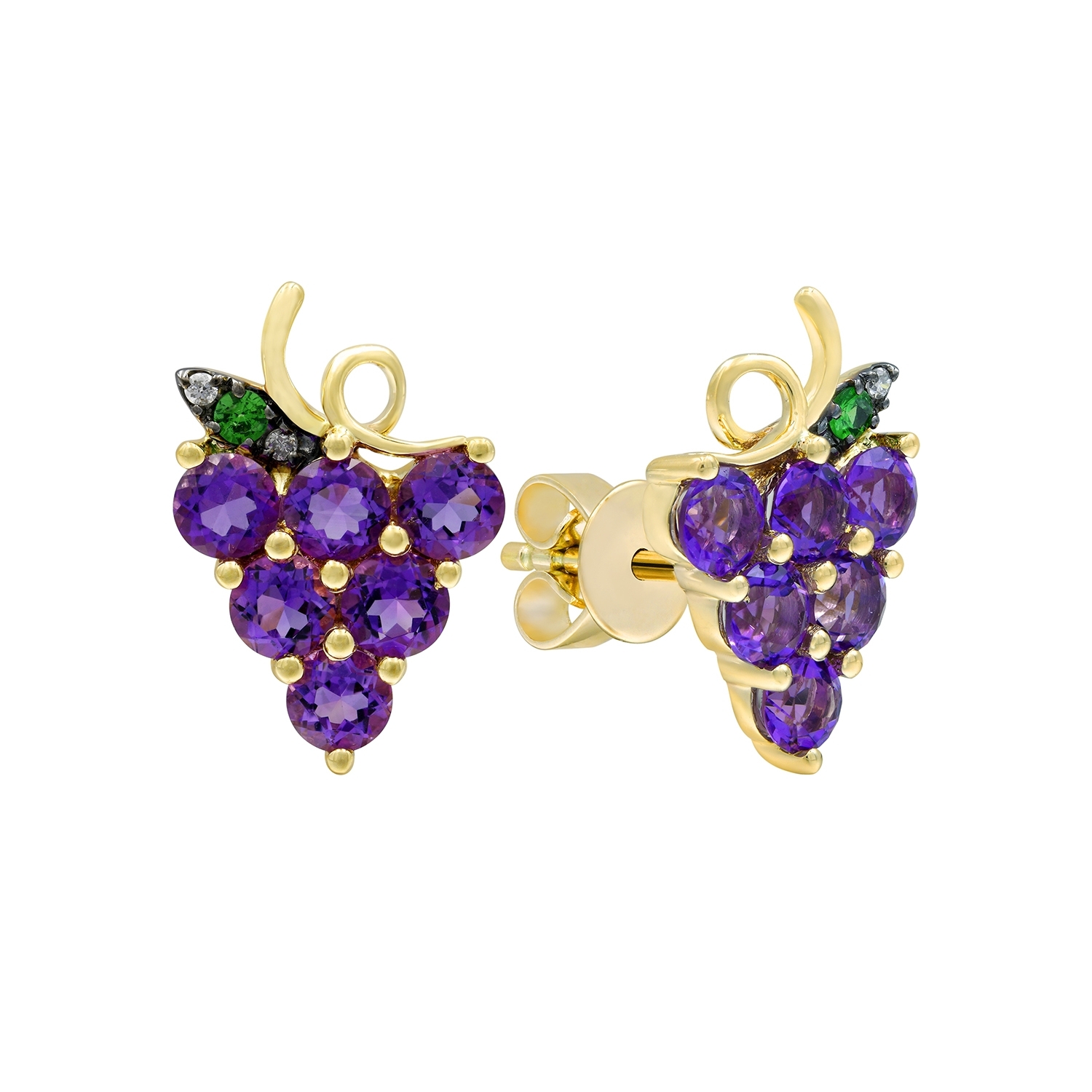 TROPICANA - Fai Po 14K Yellow Gold Amethyst, Tsavorite with White Diamond Earrings, 1.337 TCW