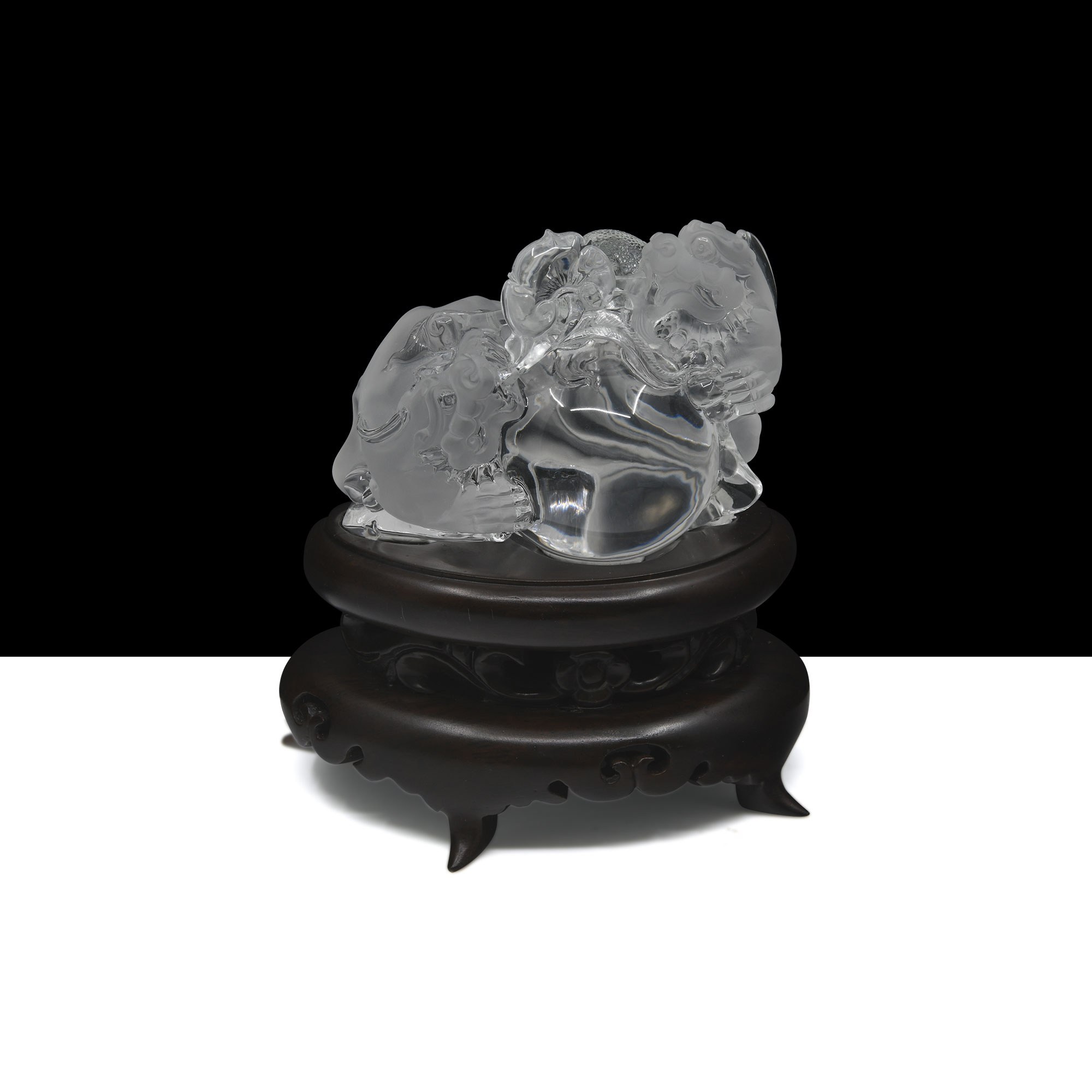 Crystal Carving Two Dragons With Wooden Stand 351G