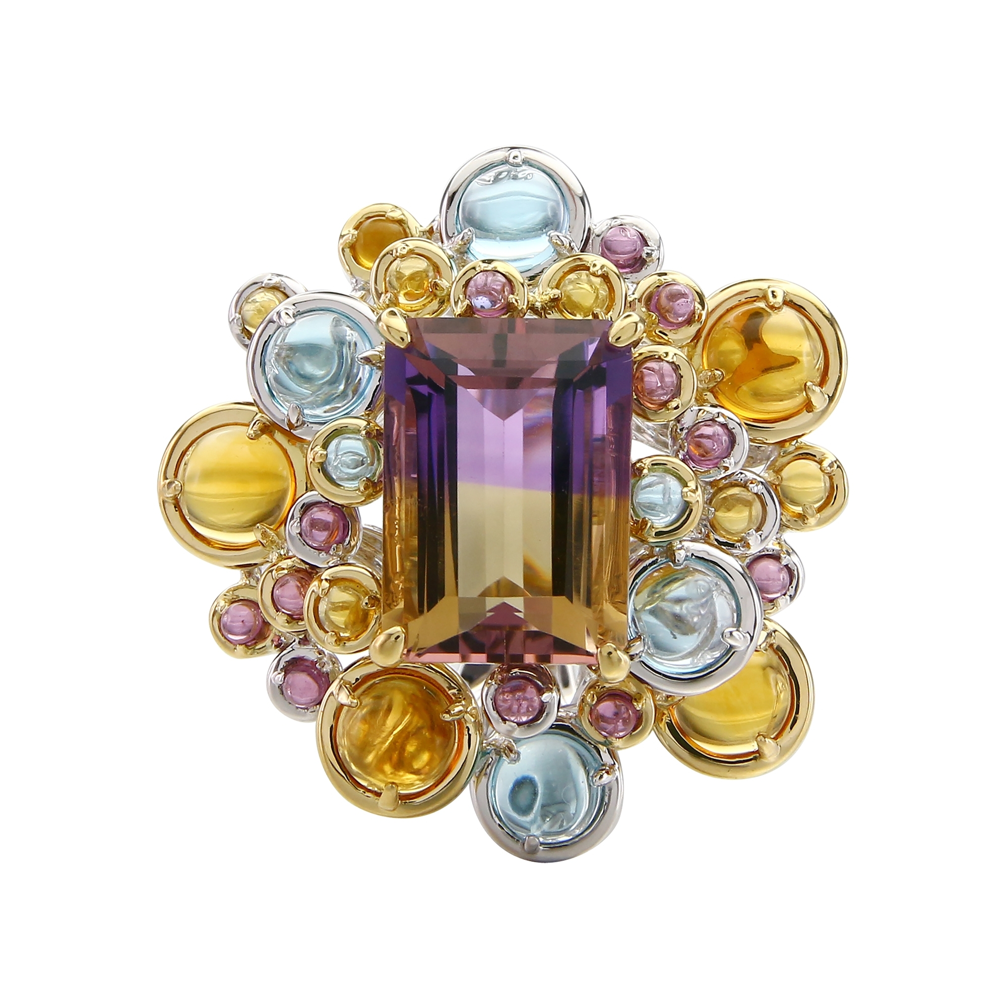 Ametrine, Rhodolite Garnet, Citrine, Blue Topaz Ring, 13.715 TCW