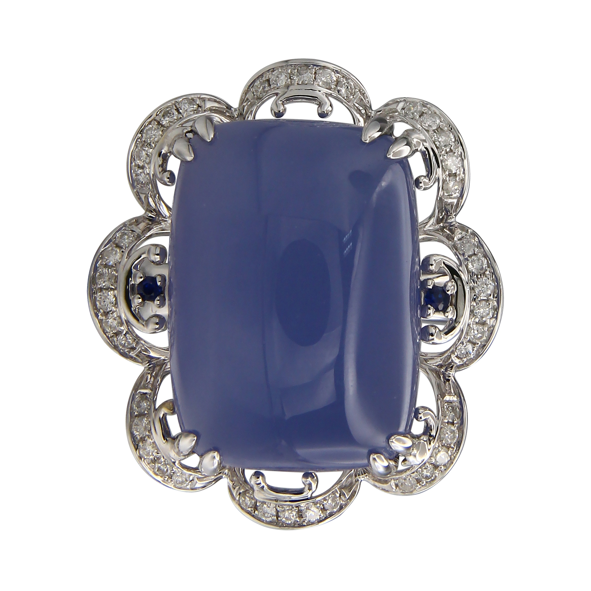 Blue Chalcedony, Blue Sapphire Ring with White Diamond,22.488 TCW