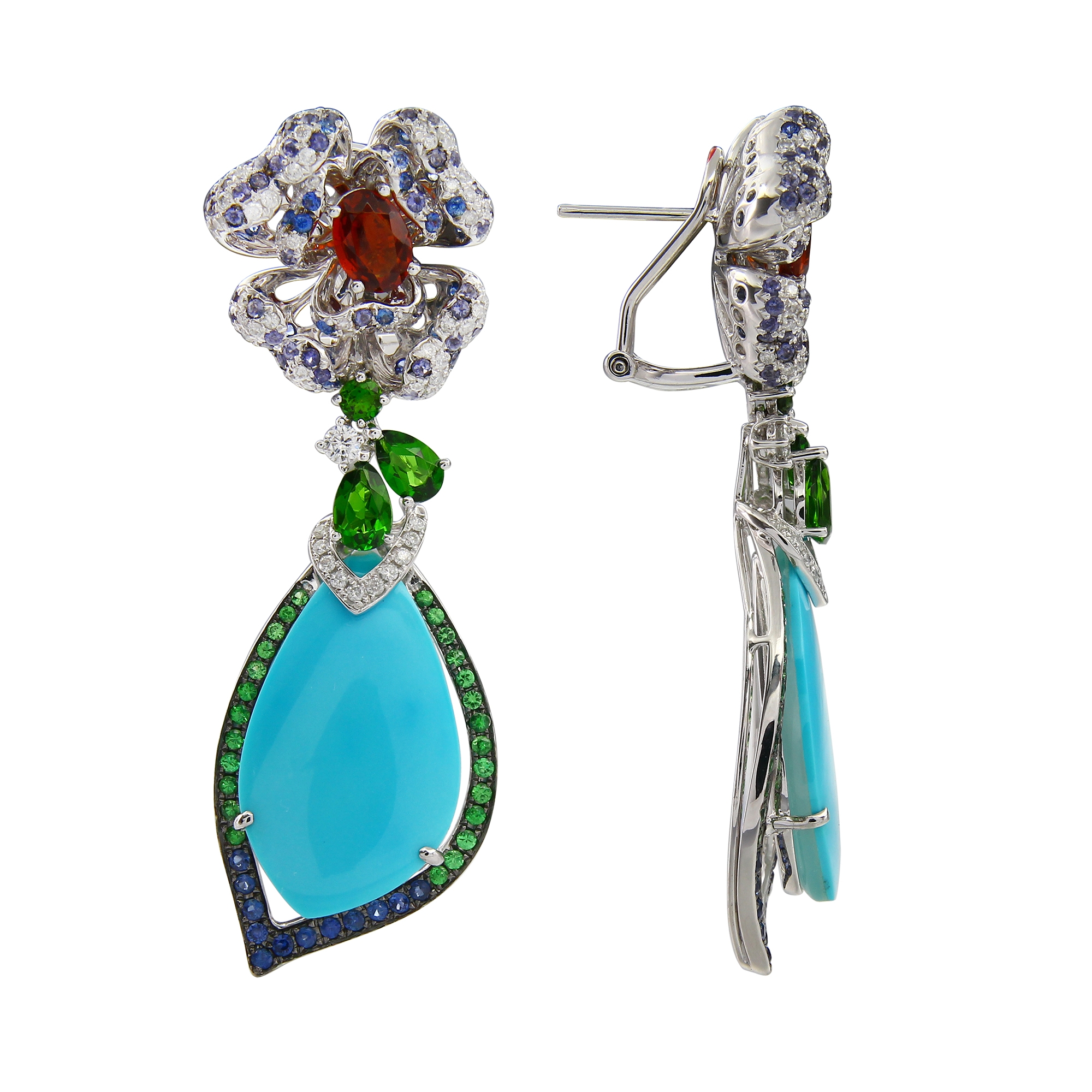 Turquoise with Mother Of Pearl Doublet, Multicolor Gemstone Earrings with White Diamond, 82.148 TCW